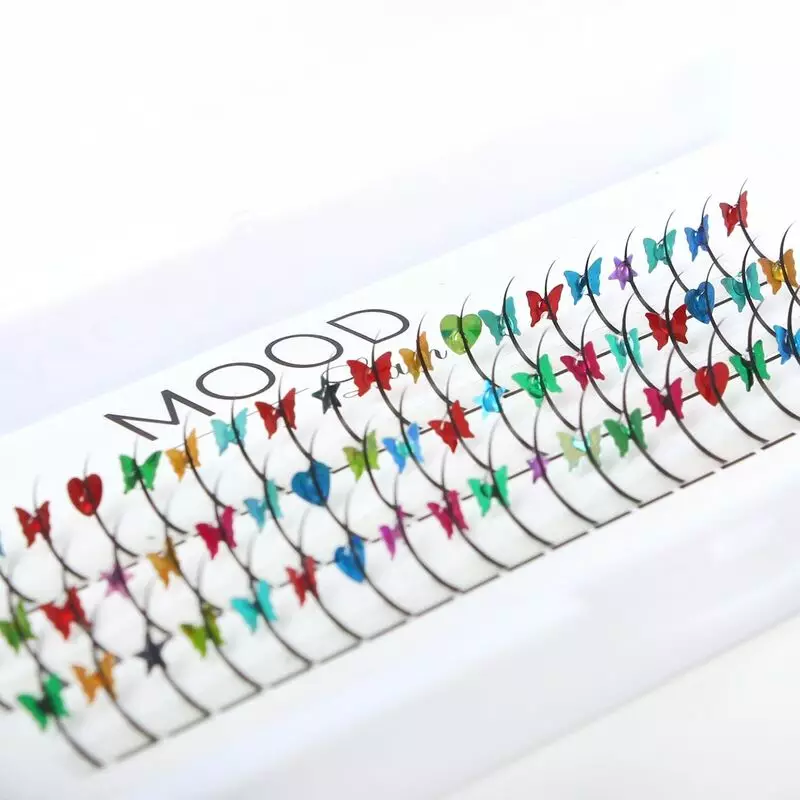 KORISTEKUIDUT VÄRIKKÄÄT PERHOSET, SYDÄN JA TÄHTI KUVIOLLA. MIX rasiassa 10mm / 11mm / 12mm. Timantti kiinnitettynä yhteen 0.07 paksuiseen kuituun. C- kaari (Kuitu on kaarevampi C, joten asennus onnistuu asennuskulman muuttaessa asentamaan kauniisti C, CC, ja D- kaaren ripsienpidennyksiin). Perhonen kiinnitetty kuidun etupuolelle.