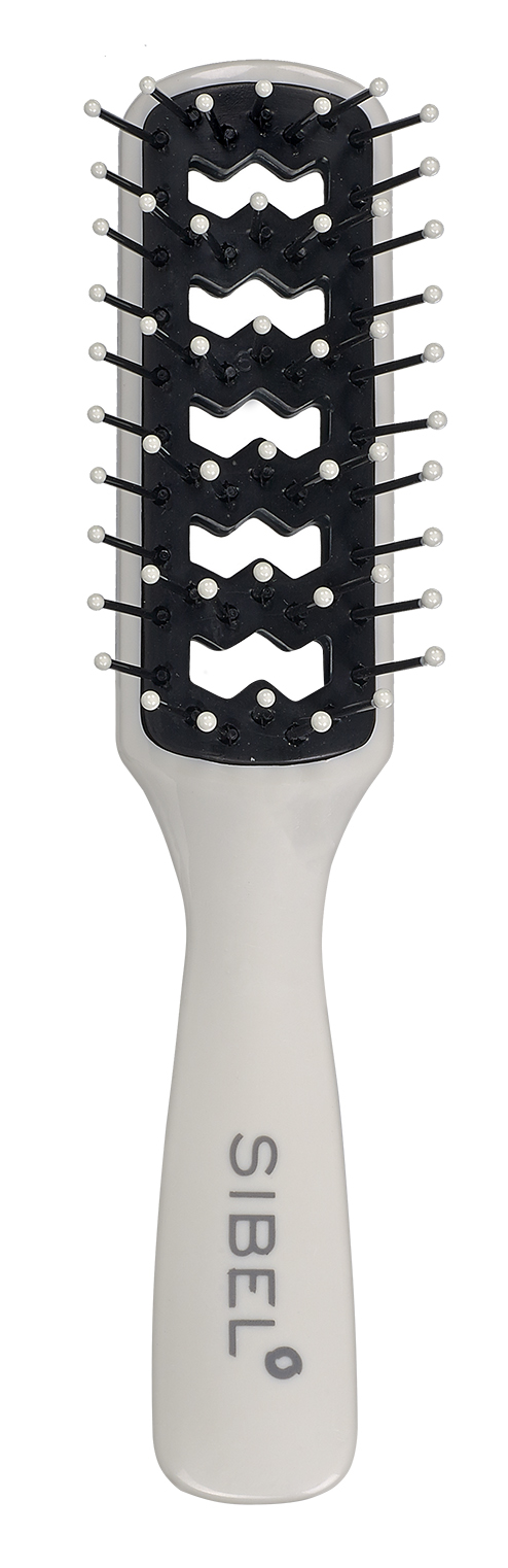 Antistaattinen muovinen harja, jossa pallokärkiset nailonharjakset. Harjaa voi käyttää föönauksessa muotoilunsa ansiosta. Sopii kaikille hiustyypeille, 17,5cm pitkä.